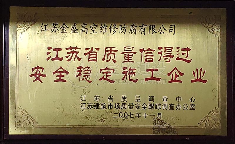 • 2007年江蘇省質(zhì)量信得過(guò)安全穩(wěn)定施工企業(yè)